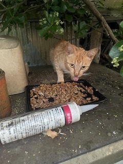 3枚目の子も自分だけ食べに来て、子猫を一切連れてこない。離れた空き家付近で子猫4匹