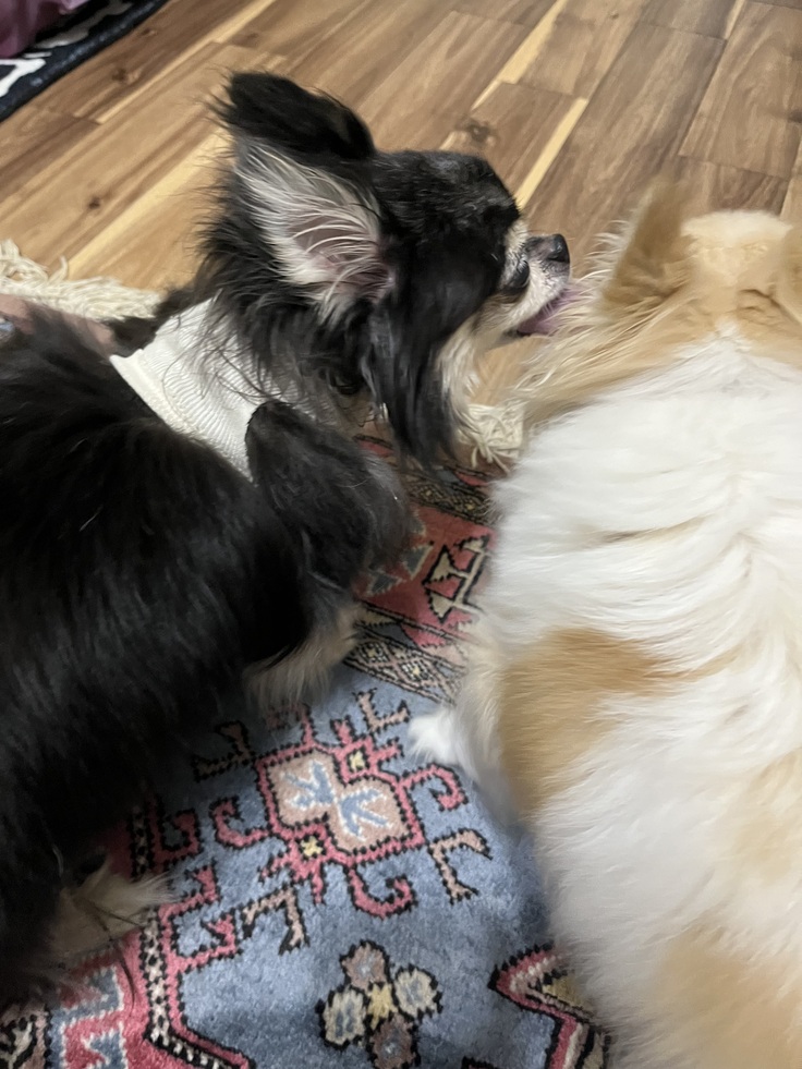 お家に帰ってきてすぐに相棒に歓迎され黒太も部屋中歩き回って喜んでる様子でした。