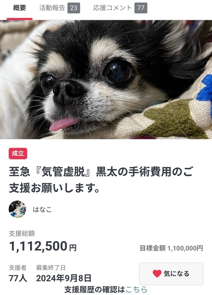皆様の暖かいご支援のおかげで無事達成する事が出来ました😭