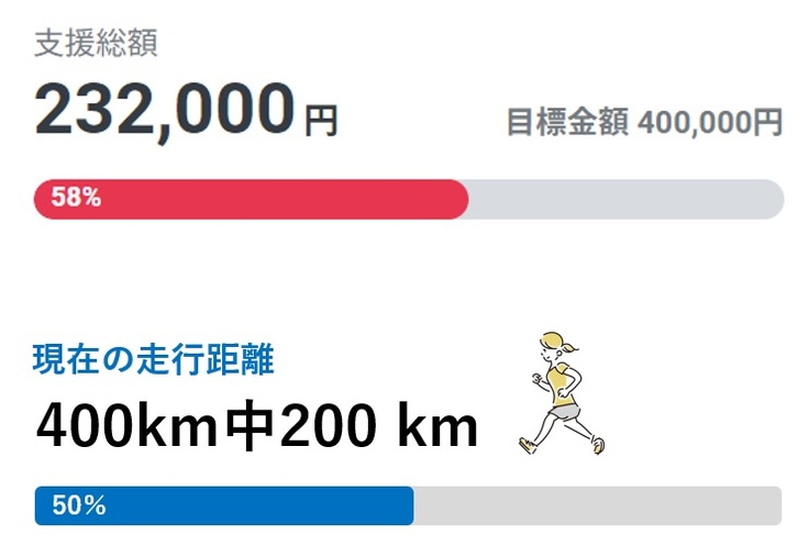 募金40万円の目標の半分は越えましたが、まだゴールは先です。皆様のご支援をお願いします。
