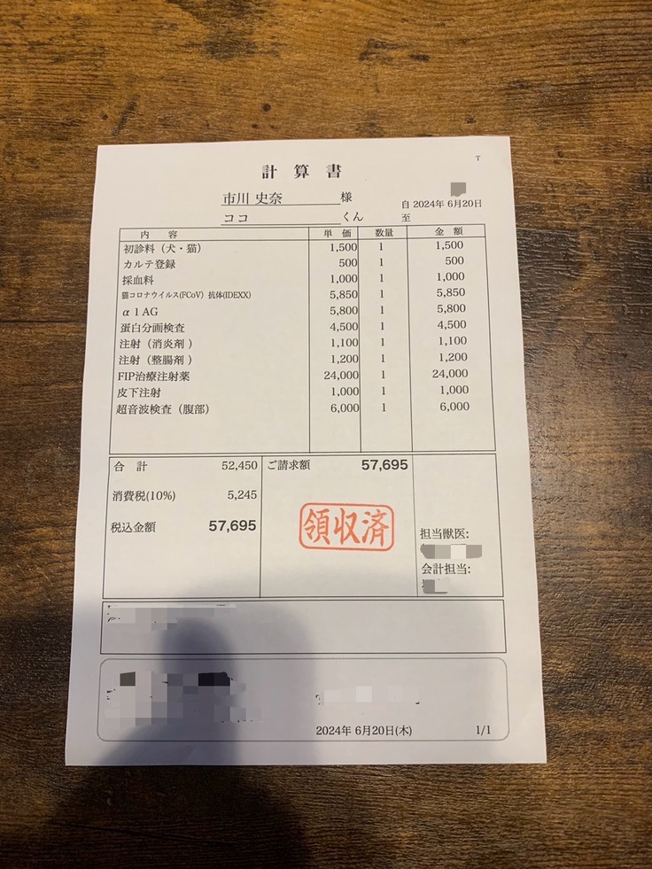 私達はすぐに別の病院にかかり、そこでまずFIPの精密検査を行い外部の医療機関に検査を依頼しました。