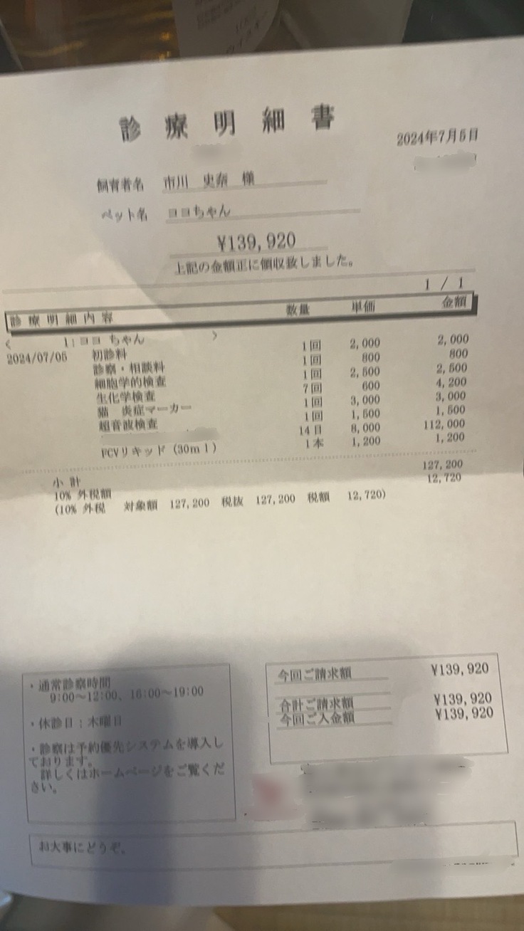 ▶︎ 4. 掲載している資料についてページ上に掲載している診断書や診療明細書などの資料は全て動物病院から掲載の許諾を得ております。
