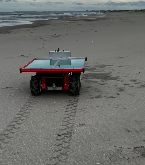 今回の「九十九里浜の自然を守る会」様からのご相談では、自走式ロボット(REACT株式会社様製)での支援活動を立案しました。その理由としては、海辺のため風が強いこと、人がいること、飛行させるための許認可が必要なことに加え、雨でも利用できること、また地域の皆さまでの他用途でのシェアリングが可能であることなどを踏まえ、シンプルに完結する陸上利用が最適であると考えました。