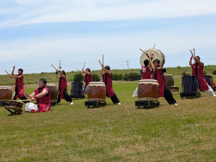 太鼓の演奏と最後の集合写真です。地域一体の活動ってステキですね!!