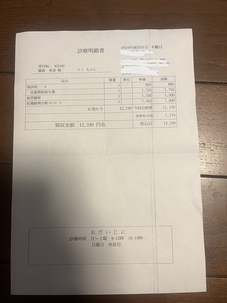 これは抗がん剤の副作用ではなく、病気からきている可能性の方が高いとのことでした。