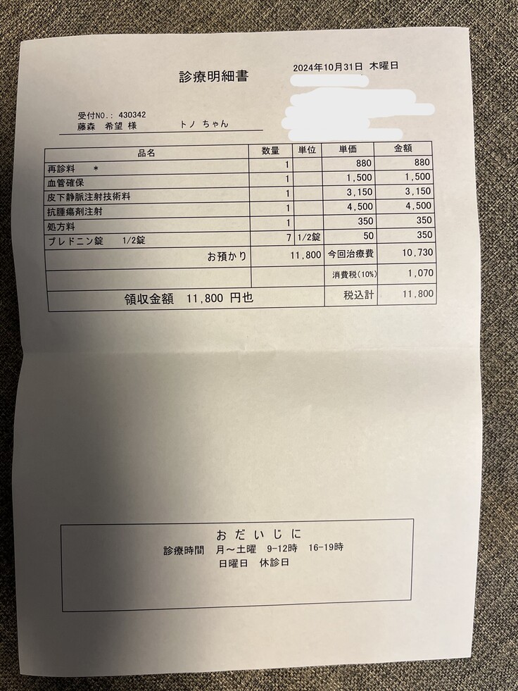 ただ私たちのヒーローの獣医師様は、最悪この治療が効かなくなった時のプランBも密かに探してくださっていて、それはそれは心強く思っています。
