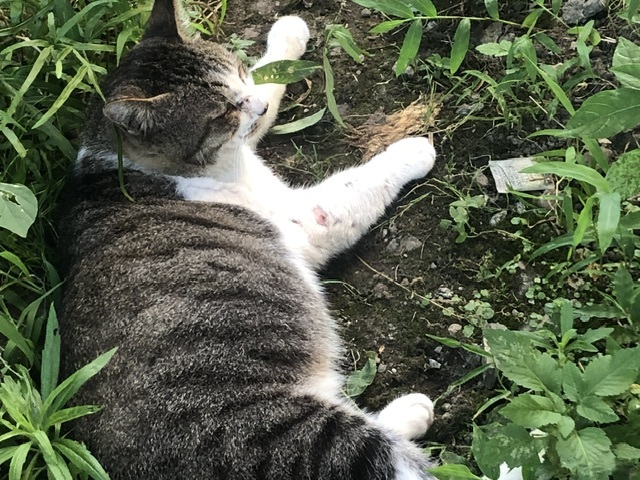 在宅の仕事をしているので、割と庭に来る猫たちの様子は見に行けます。朝昼晩と猛暑対策の水撒きをして猫たちがどこにいるか把握しています。