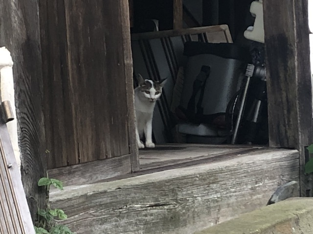 前回避妊手術出来なかったハチさんの子猫がようやく出てきました。一頭でした。白猫にブチ柄です。