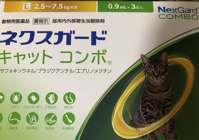パッケージに書いてある通り、このネクスガードは、体重2.5キロ以上の大人の猫にしか使えません。つまり避妊手術して生後半年近くなった2匹のメス猫のアゲハちゃんとシジミちゃんにはこの駆虫は使いません。