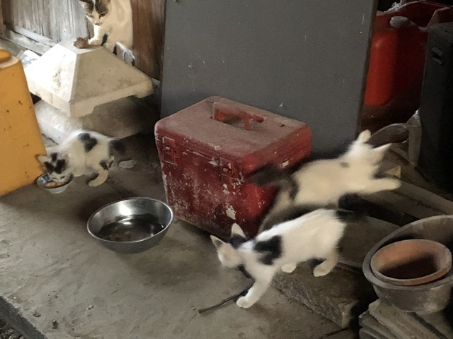 毛柄が似てるだけで三頭いるかもしれないと思っていた子猫は3頭いました。もしかしたら母猫の母猫が他の子猫を連れて行っているかもしれないので、もっと生存しているかもしれません。子育て上手な猫家族です。
