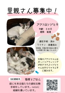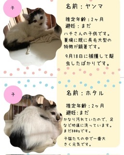 3.譲渡会では、まだワクチンを済ませていなかったので、保護した雄猫2頭を連れて行く事はしませんでした。代わりにチラシを用意して、掲示させていただきました。