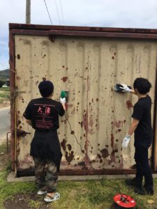 でその前の下準備として、先日Agri+のメンバーとコンテナの錆び落としをしました!30年ほど放置されていたのでコンテナはボロボロ錆び錆びで、このままではたぶん朽ち果てるんじゃないかとw