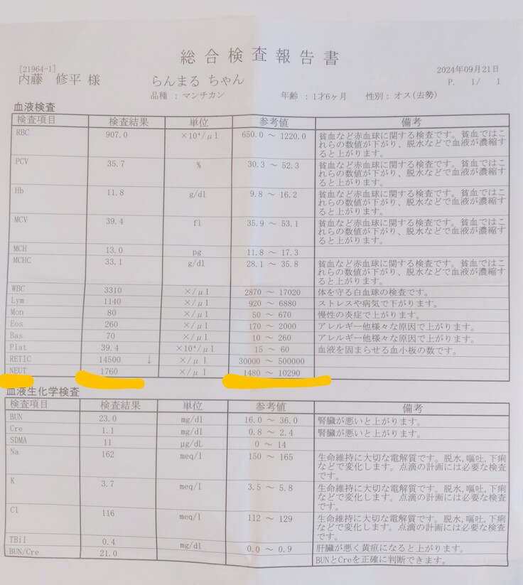 ◆9月23日 本日血液検査をした結果、NEUTの数値が2300程度まで回復したため、無事抗がん剤を打つことができました。
