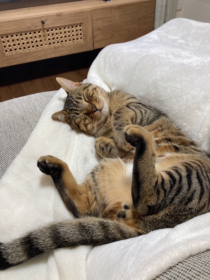 抗がん剤治療が進み、ようやくご飯も食べたり走ったり出来るようになり、幸せそうに寝て穏やかな時間を過ごせています🥰