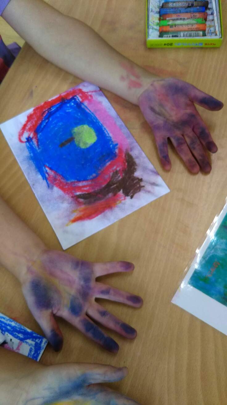 心で感じたままを大切に、お友達とも共有しあえるような雰囲気づくりのもと、少しずつアートの世界に入り込んでいきます。
