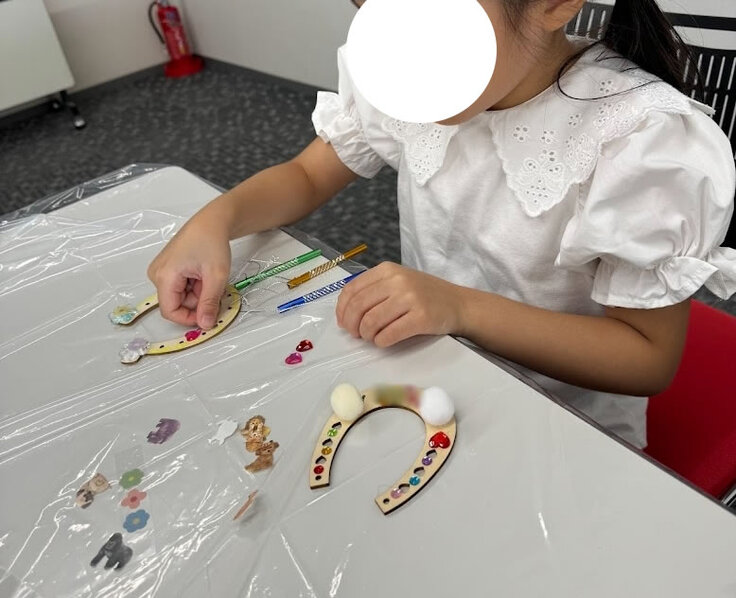 この後、まだ遊び足りない子供たちは馬や蹄鉄のデコレーションワークショップにご招待しました。