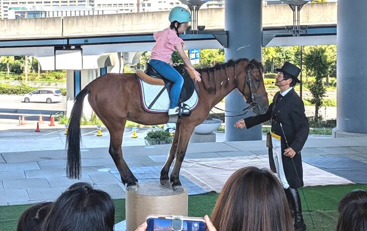 芸達者なポニーの動きに驚きながら、演者さんが話す馬についての様々な知識についてもとても興味深そうに聞いていました。