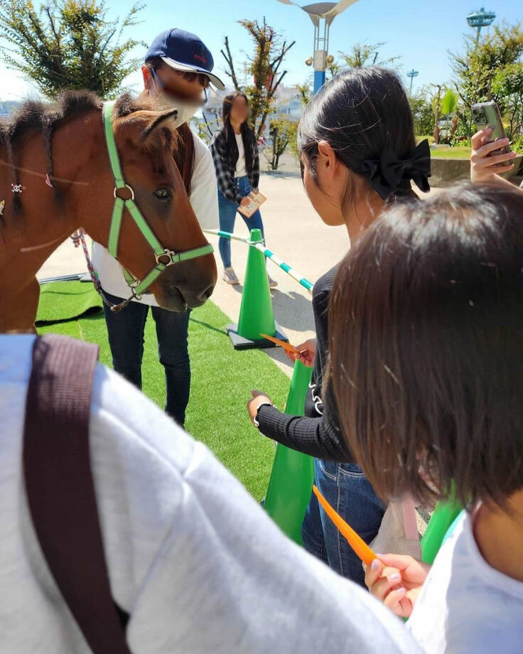 普段見慣れない馬を間近に見て、触れて、子供たちは大興奮のようでした。