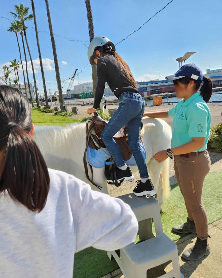 お昼休みを挟んで、お待ちかねの乗馬体験です。