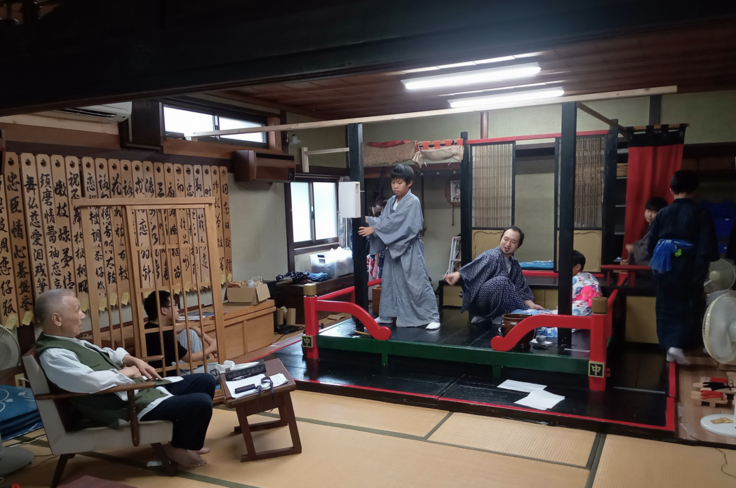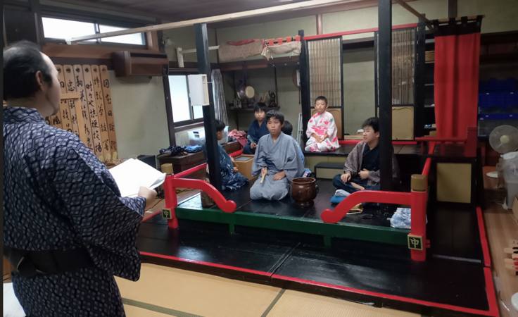 子ども歌舞伎の役者たちも舞台を想定した仕切りの中で