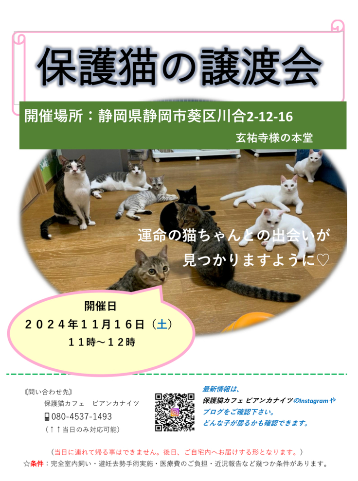 本日は、11時から譲渡会を静岡市にて開催しております。