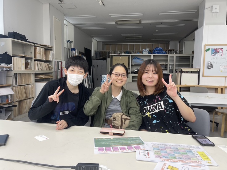 名古屋芸術大学西キャンパスのデザイン領域の学生と、ボードゲーム製作に関する打ち合わせを行いました。ボードゲームの芸術性を高めるため、デザイン領域の学生にゲームで使用するカードのデザインを依頼し、具体的なイメージを説明しました。早速、カード作成にも取り組んでいただいています。また、ボード作成に関しても多くの助言をいただきました。
