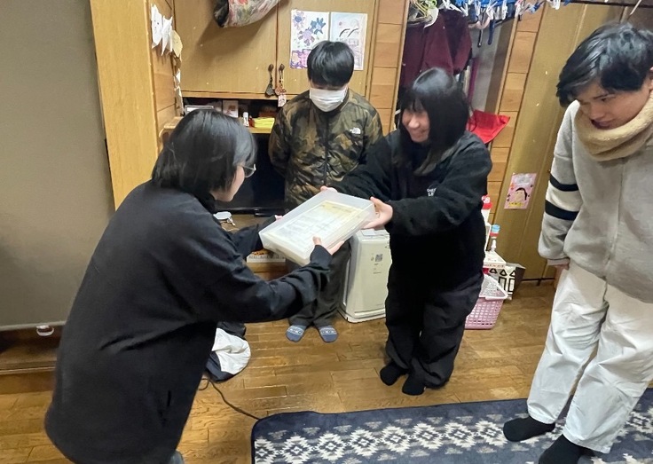 もうひとつは、倉橋先生のご自宅くちゃんハウスにお伺いし、里親家庭の里子姉妹と実子に手渡しをしました。