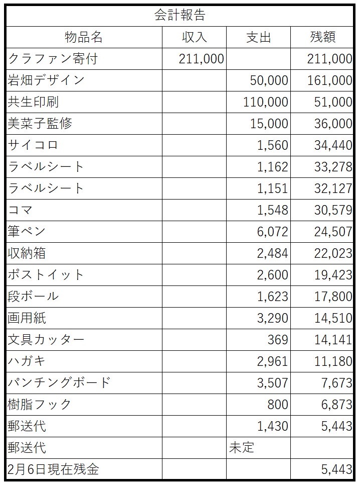 皆様から頂いた寄付金の会計報告も併せて掲載させていただきます。