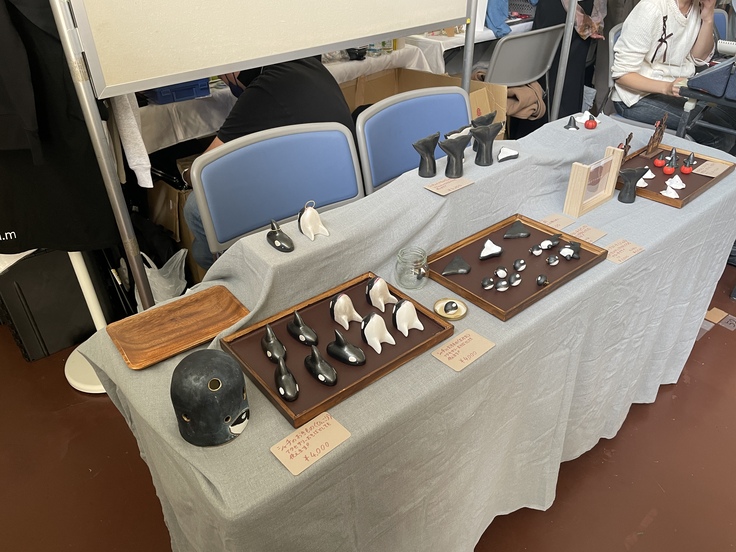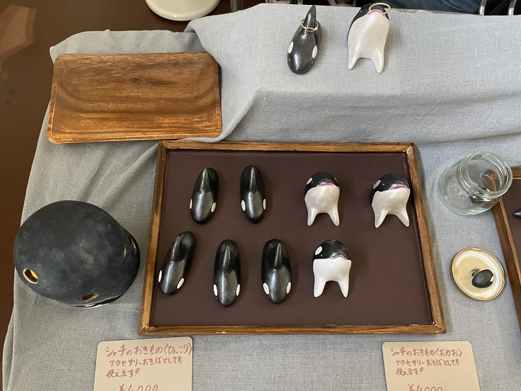 既製品では取り扱いが少ないシャチグッズがあったらいいなと思い活動を始めました。私が制作している商品の素材は石粉粘土を使用しています。石を粉末状にして混ぜた陶器のような質感です。陶器のようですがかなり軽いです。色合いは控えめな艶のあるパールカラーが特徴です。また前職のものづくりの技術を活かして石粉粘土とは思えない表面のなめらかさに仕上げています。ここは特に力を入れています。シャチが好きな大人が日常生活で使いやすいグッズを制作しています。