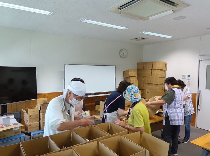 まず、連携団体に食品・学用品・生活用品購入のためのニーズを聞き取り、選定・発注し、受取、公民館での集品の上、5つのパントリーに提供を開始している。7月に第1回の提供を行い、10月までに3回が終了している。支援人数は最終1,750人をめざしている。食数にすると5,250食だ。