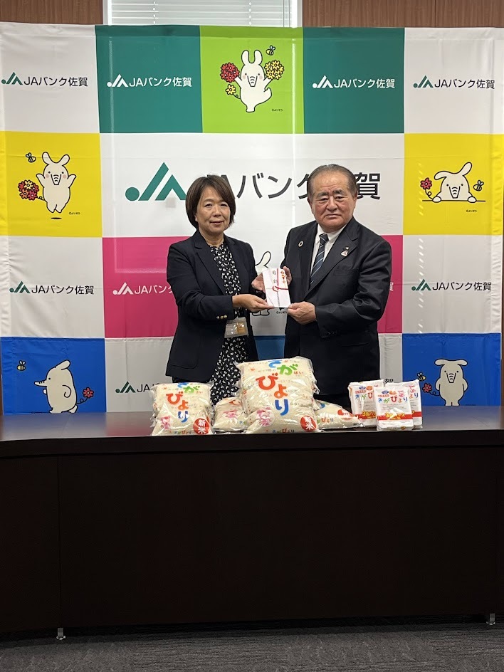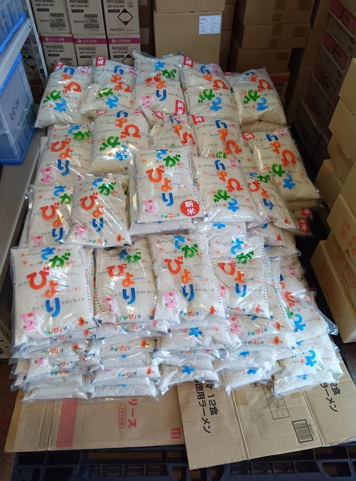 JAバンク佐賀様より佐賀産「さがびより」5㎏の新米100袋、1.8kg100袋本日いただきました。