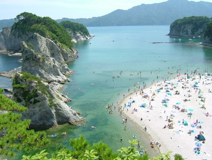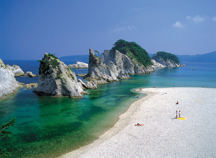 波は穏やかで、透明な海の浄土ヶ浜は、夏は海水浴が人気で、「快水浴場百選」や「日本の水浴場88選」などに選ばれています。