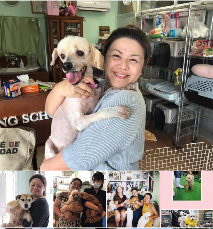 私とあや先生、生徒たちで多い時は、1日6頭くらいの保護犬たちを毎週グルーミングしていました。