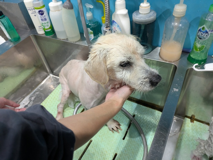 先日来た保護犬ファルコン君、愛護センターから出て直ぐうちでグルーミングする事になりました。