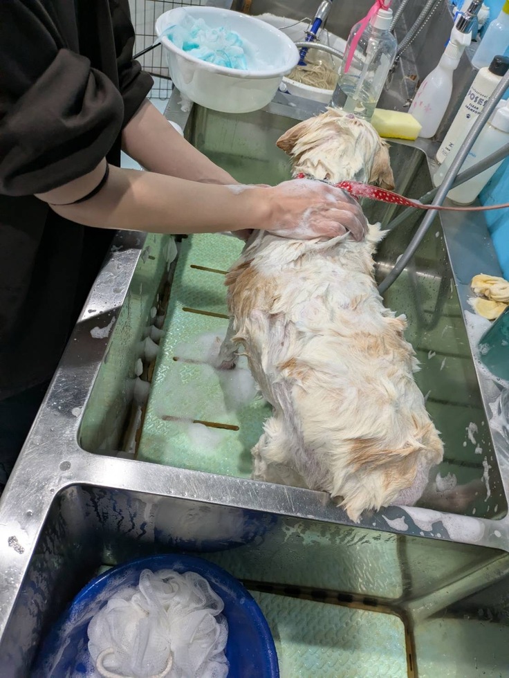 今年初のシャンプーは保護犬🐕🐕2匹のジョージー&チャチャ。
