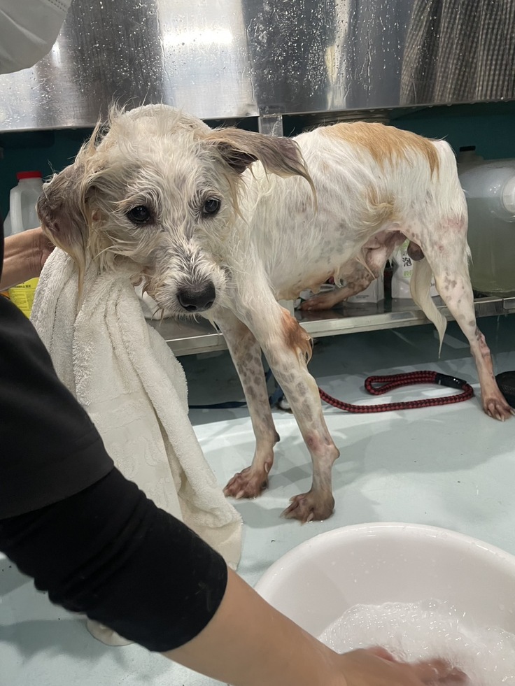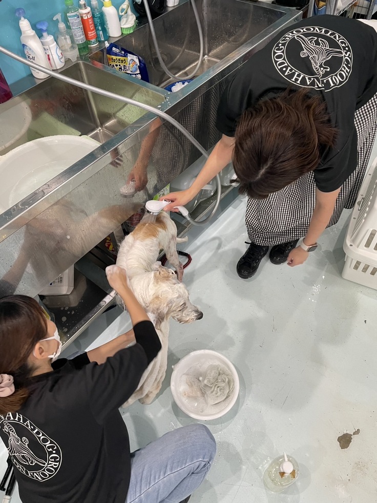 愛護センターから出て、そのままスクールでシャンプーしました。