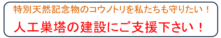 私たちの上郡町で繫殖しようとしているコウノトリを守るために人工巣塔の建設にご協力をお願いします。