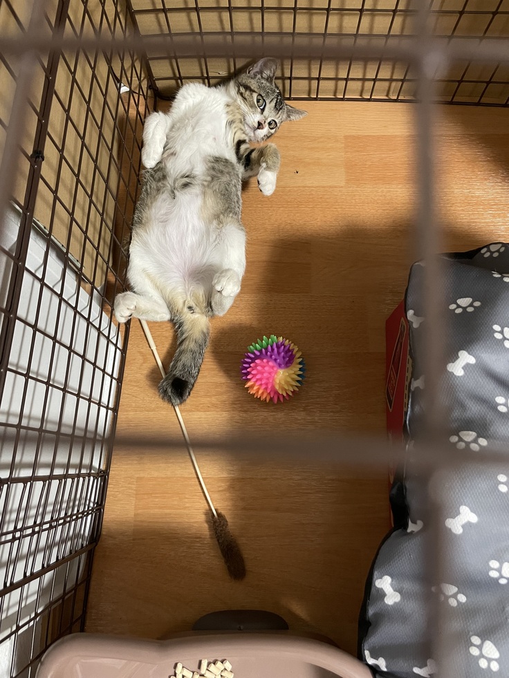 しばらくたつとバタバタしてるのも自分へ向いている物じゃないと分かりケージの中で遊びだしました!