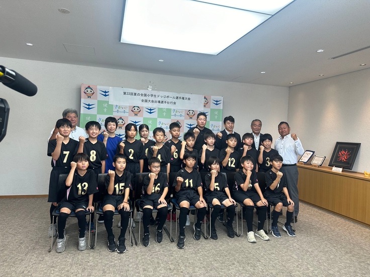 坂出市役所にて、第33回夏の全国小学生ドッジボール選手権全国大会出場選手走行会を行っていただきました。