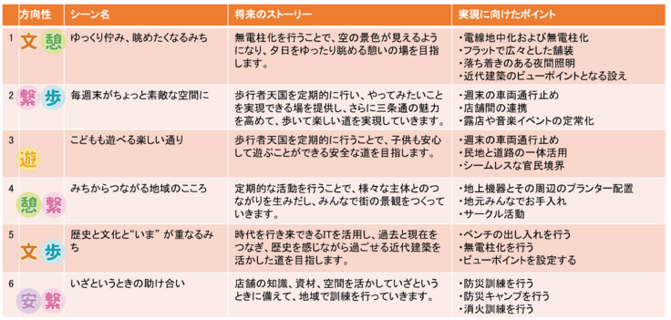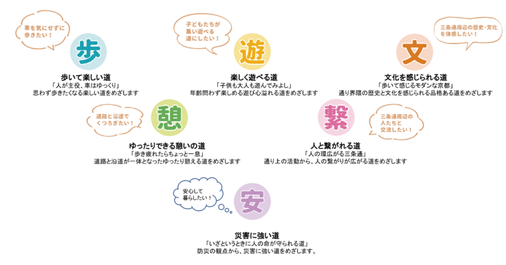 【三条通のみちづくりにおける6つの方向性】