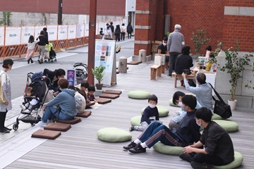 また、実際に地域が新しいみちの使い方を体験し、また、課題を明らかにする継続的なまちづくりの実践として、2021年10月に第1回目の社会実験を実施し、翌2022年、2023年と続けて実施することで、住む人、働く人、訪れる人のためのみちづくりの定着化を進めてきました。