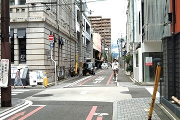 一方で、都心地区のある特性上、歩行者に加え、自転車や自動車が混じりあう状況が続いており、1時間あたり約1,500人の歩行者交通量に対して、幅員6m程度の細街路に1時間当たり約100台の車両が走行しており、その自動車交通の存在によって、地域で暮らし働く人々、訪れる買い物客や観光客が、快適・安全に歩けて、居心地よく過ごせる道路空間にはなっていないことが地域の懸案事項となっていました。