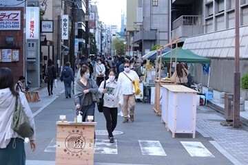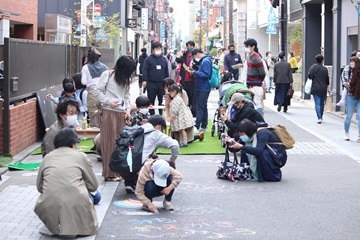 これまでの取り組みを通して、普段は自動車を気にしていた歩行者が、みちの真ん中を自由に歩き、横並びで会話を楽しみながら歩く姿や、みちを使って楽しそうに過ごす子どもたちの笑顔、また、大人たちは音楽に合わせて、お酒や食事を楽しむ姿が広がり、人中心のみちの姿が体現されました。