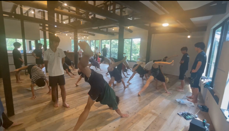 3日目の朝は、東大和南公園のトラックでポイント練習を行い、全員が精度を意識した練習を達成できました。午前中には、特別講師として石塚円香様をお招きし、体幹トレーニングを実施。アニマルフローという全身を使った動きで、新鮮なトレーニングに集中しつつも楽しんで取り組みました。