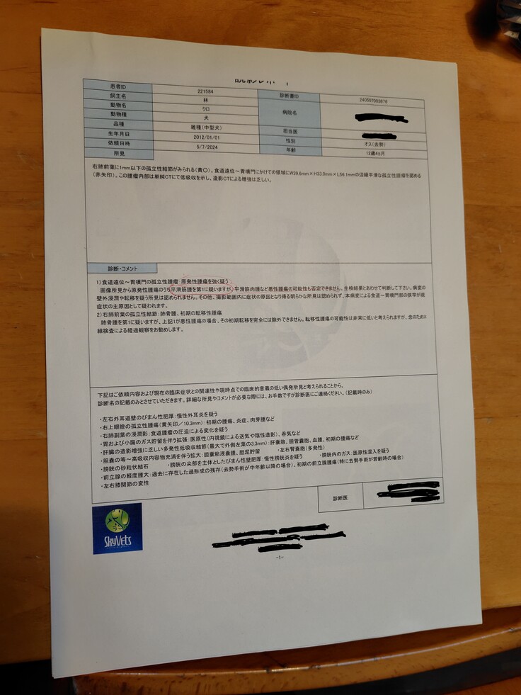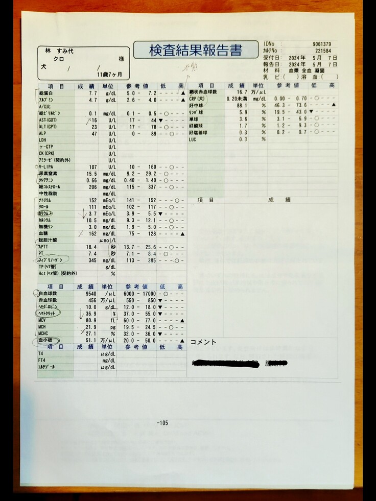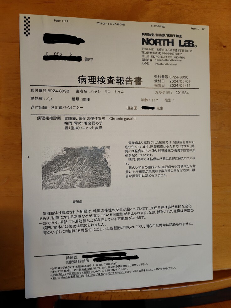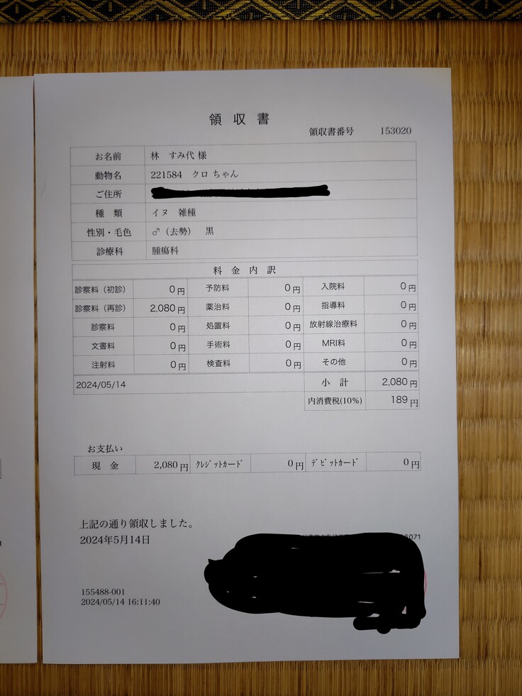 5月の内視鏡、CT、血液検査結果やクロの状態ではとりあえず手術受けられる状態でした。なるべく早く腫瘍の摘出手術をした方が良いと言われました。