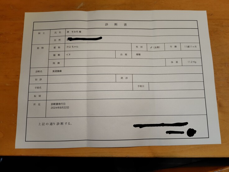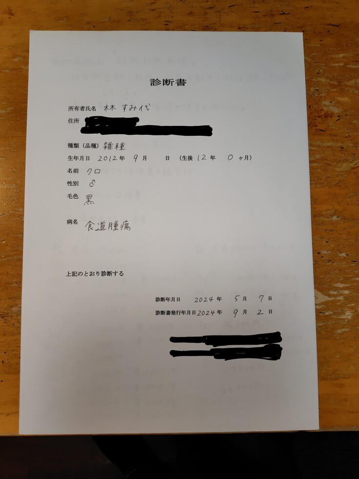 そこで食道の腫瘍を取り除きまた元気なモリモリ食べるクロになってほしいために手術をしてあげたいと思いました。毎日吐き気で口元も汚れるし、ストレスもかかるし、暑さもありますが、本当に疲れています。見ているのが辛いです。