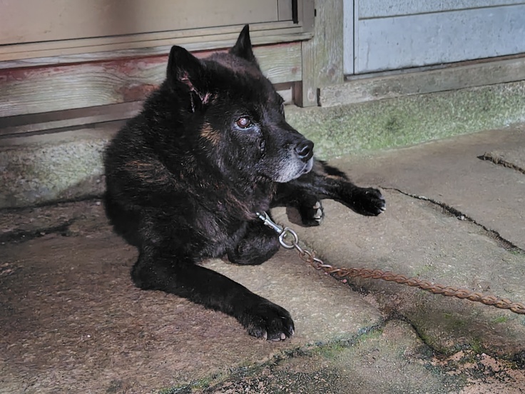 普段仕事のため散歩も暗くなってからの事が多く投稿も夜になります。写真も本日は暗いですが、クロちゃんの様子を載せさせていただきます。いつも外での隠居の軒下で過ごしております。はっきり映らなくてすみませんm(_ _)m