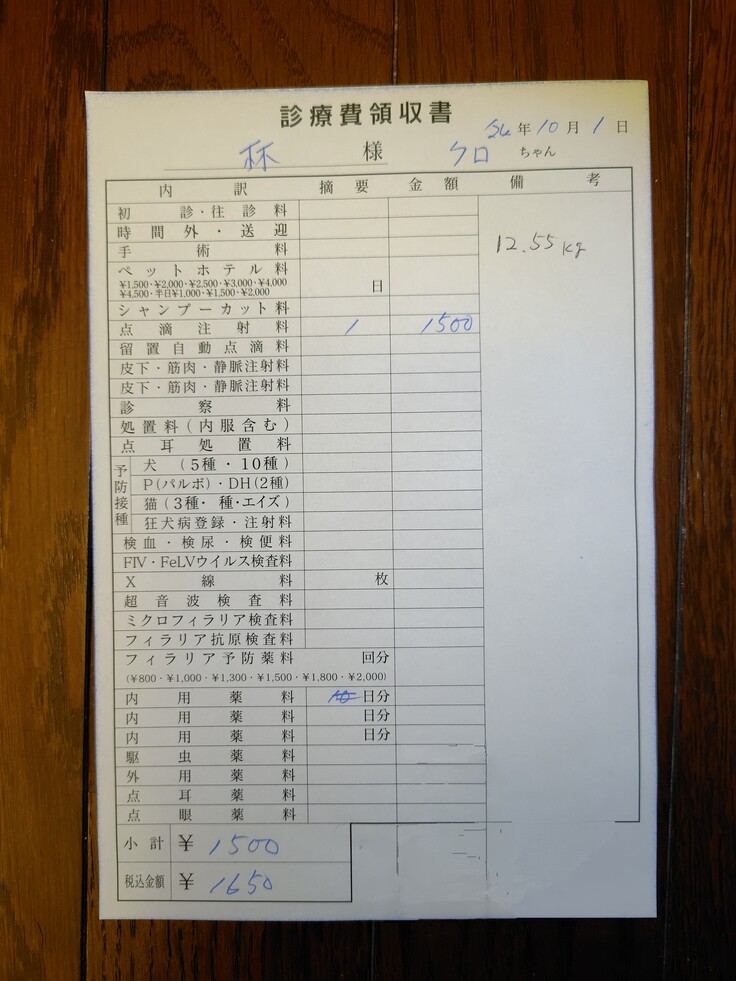 昼間は吐き気がきて、胃液をもどしたり少ししんどそうでした。夕方散歩に行き、またよだれや吐き戻しもありましたが、明日手術ですし、夜にいつもの病院へ皮下点滴に行きました。