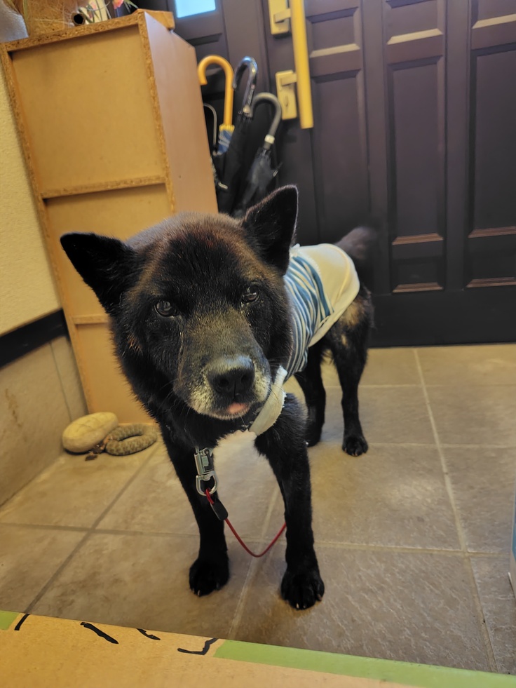 また胃瘻の設置手術も続けてしてくださり、左側の胃の辺りから管が出ています。左側の毛は広範囲に剃られて手術後の縫ってあるのも見ましたか痛々しく、でもキレイに縫ってあり血は全く出てなくて服を着せているからとあえてガーゼなども貼らずにしてありました。写真を撮ってないのですが、胃瘻の所は茶色っぽい汁が出ています。こちらは体が治そうとしているためそういう汁が出てくるようで気にしなくて良いと😅