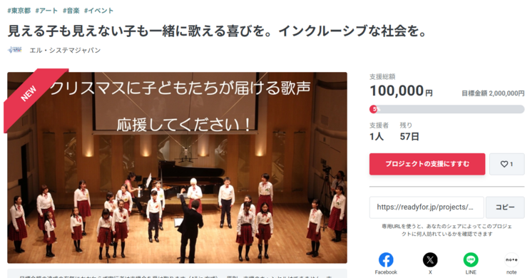 本日、11月1日(金)正午から、READYFORのサイトにて、クラウドファンディング「見える子も見えない子も一緒に歌える喜びを。インクルーシブな社会を。」を開始いたしました!